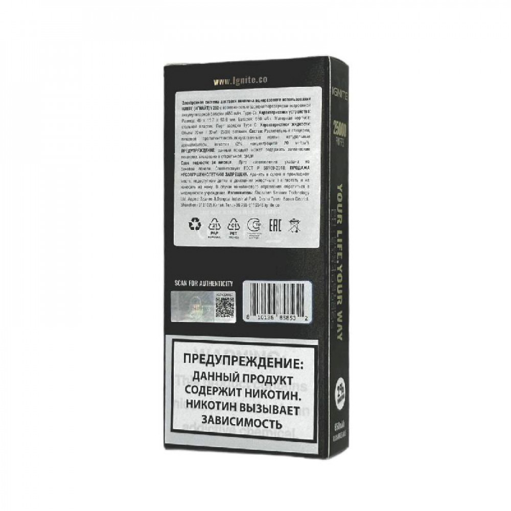 Электронная сигарета Ignite V250 Gold 25000 - Grape Ice (Виноград лёд) - купить в Казани